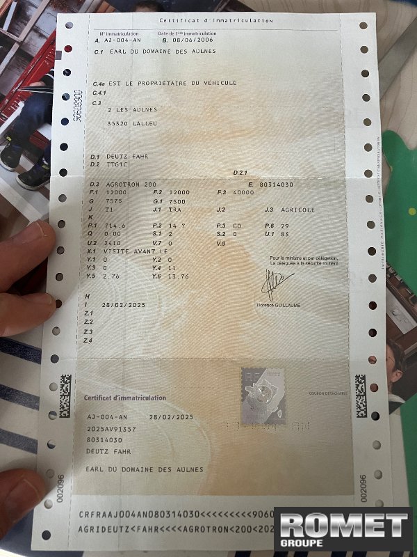 Relevage AV DEUTZ FAHR 3.5T